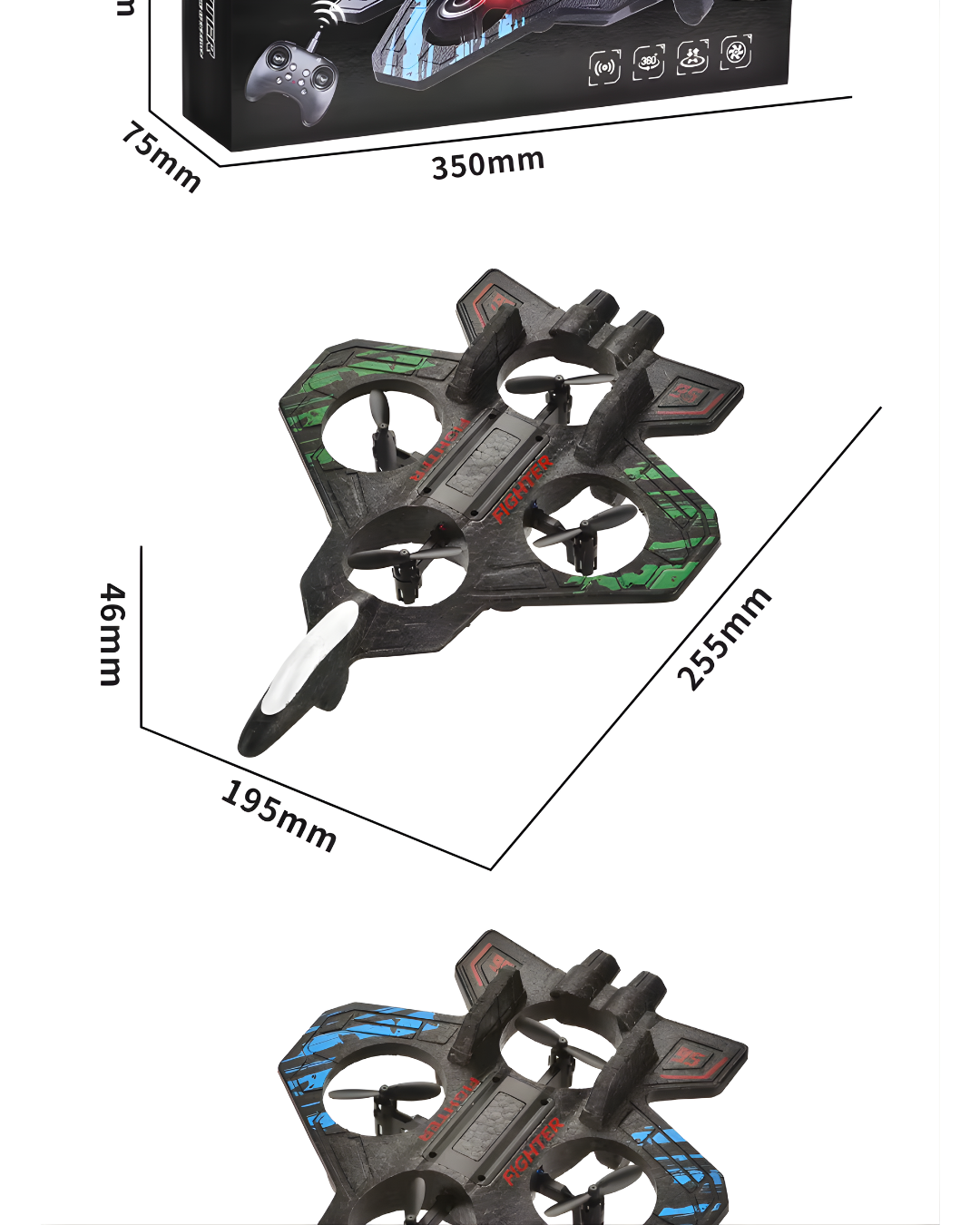 Aprende a volar sin complicarte. Este avión RC tipo “quadcopter” con ducted fans está pensado para uso recreativo al aire libre, con control de 4 canales (2.4 GHz), LED integrados y despegue/aterrizaje con 1 clic. Ideal para quienes buscan su primer vuelo RC en familia.