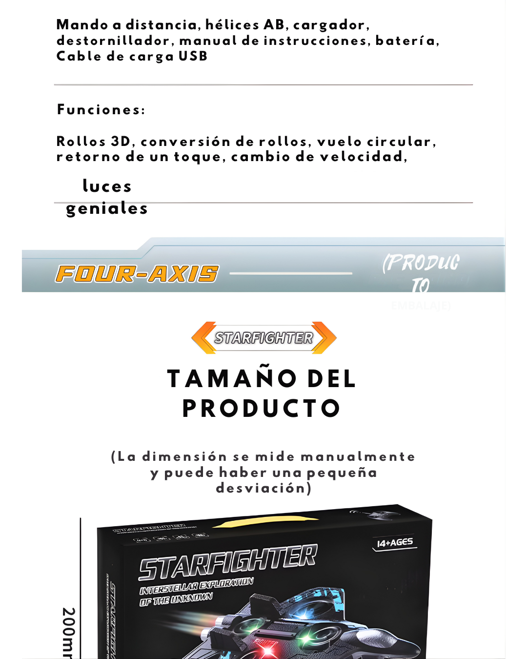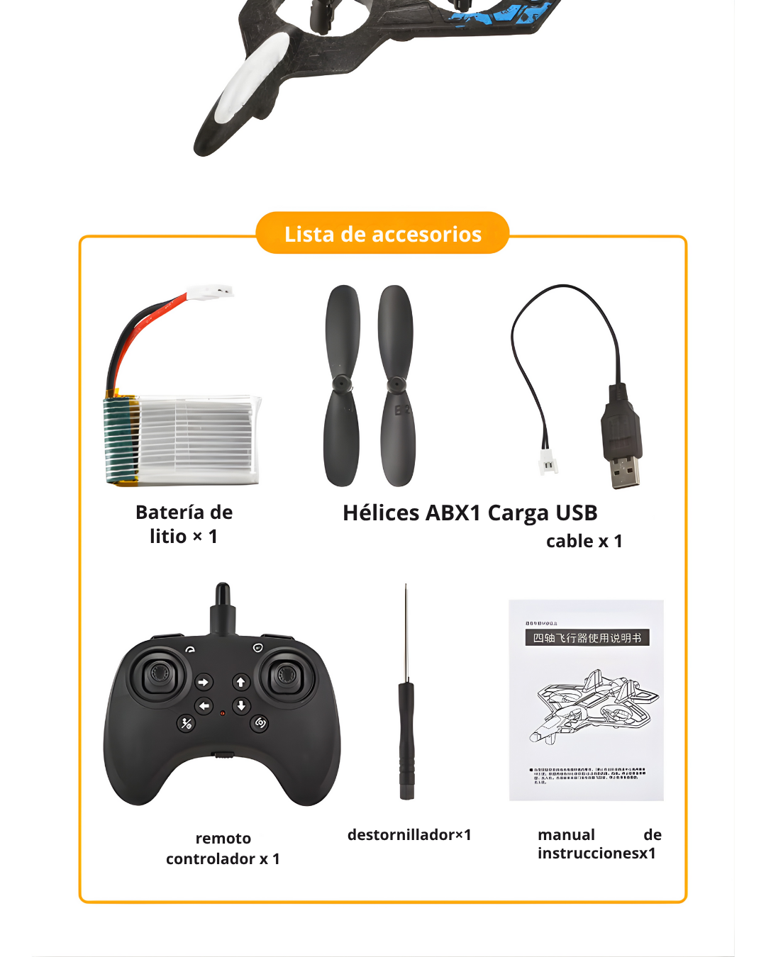 - Listo para volar: no requiere armado; incluye control 2.4 GHz.